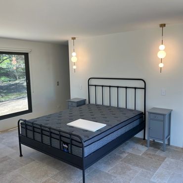 A homestead-inspired modern guest house brought to life with designer lighting, bespoke detailing, and high-end finishes.